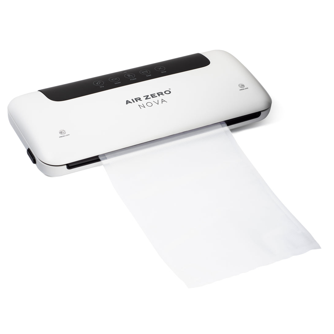 Air Zero Nova je kompaktná vákuovačka, ktorá sa pohodlne zmestí aj do tej najmenšej kuchyne. Jej energeticky úsporný motor má príkon iba 100 W. Odsáva vzduch z vreciek do vysávača rýchlosťou 8 l/min. Na svoju veľkosť je mimoriadne výkonný, dokáže až 100 vysávaní za sebou. Prehriatiu zabraňuje automatická ochrana.