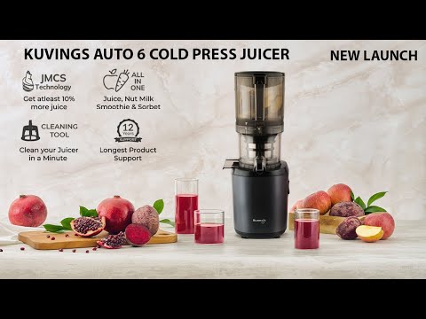 A Kuvings AUTO6 kompakt, prémium lassú prés, amely a 1,7 literes automata adagoló tartállyal folyamatosan és felügyelet nélkül dolgozik. Az önvágó csiga a hozzávalókat megfelelő méretre aprítja, a rozsdamentes acél finomszűrő pedig nagy hozamú, tiszta levet készít alacsony oxidációval. A csomag szorbé szűrőt is tartalmaz, így friss levek és krémes fagyasztott desszertek is készíthetők egyetlen géppel. A fő alkatrészek BPA-mentes Tritan/Ecozen anyagból, a csiga Ultem műanyagból készül; mindennapi használatra fejlesztve.