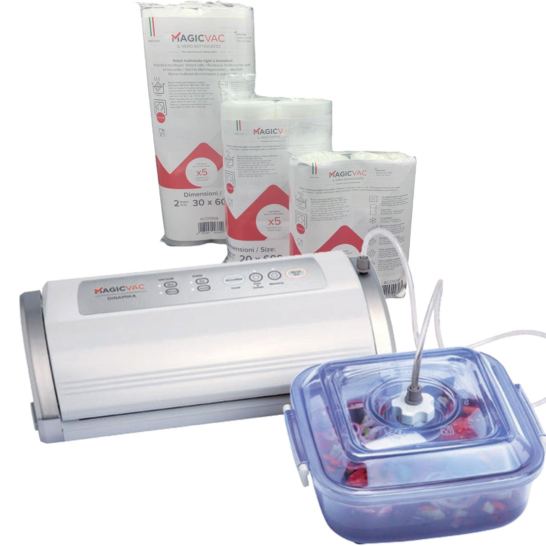 Vákuové nádoby Magic Vac sú dôležitou súčasťou vákuového skladovania. Sú navrhnuté tak, aby udržali potraviny podliehajúce skaze čerstvé až 5-krát dlhšie.