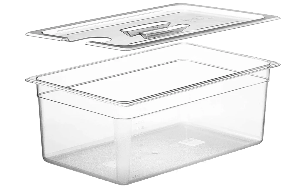 Súčasťou balenia je 22-litrová žiaruvzdorná nádoba s pokrievkou, ktorá má ideálnu veľkosť na varenie ešte väčšieho množstva jedla metódou sous vide. Polykarbonátový materiál má vynikajúcu tepelnú ochranu, vďaka čomu sú dlhé procesy varenia energeticky úspornejšie. Pokrievka pomáha znižovať odparovanie vody, takže je možné vykonávať dlhé varenia bez prerušenia.